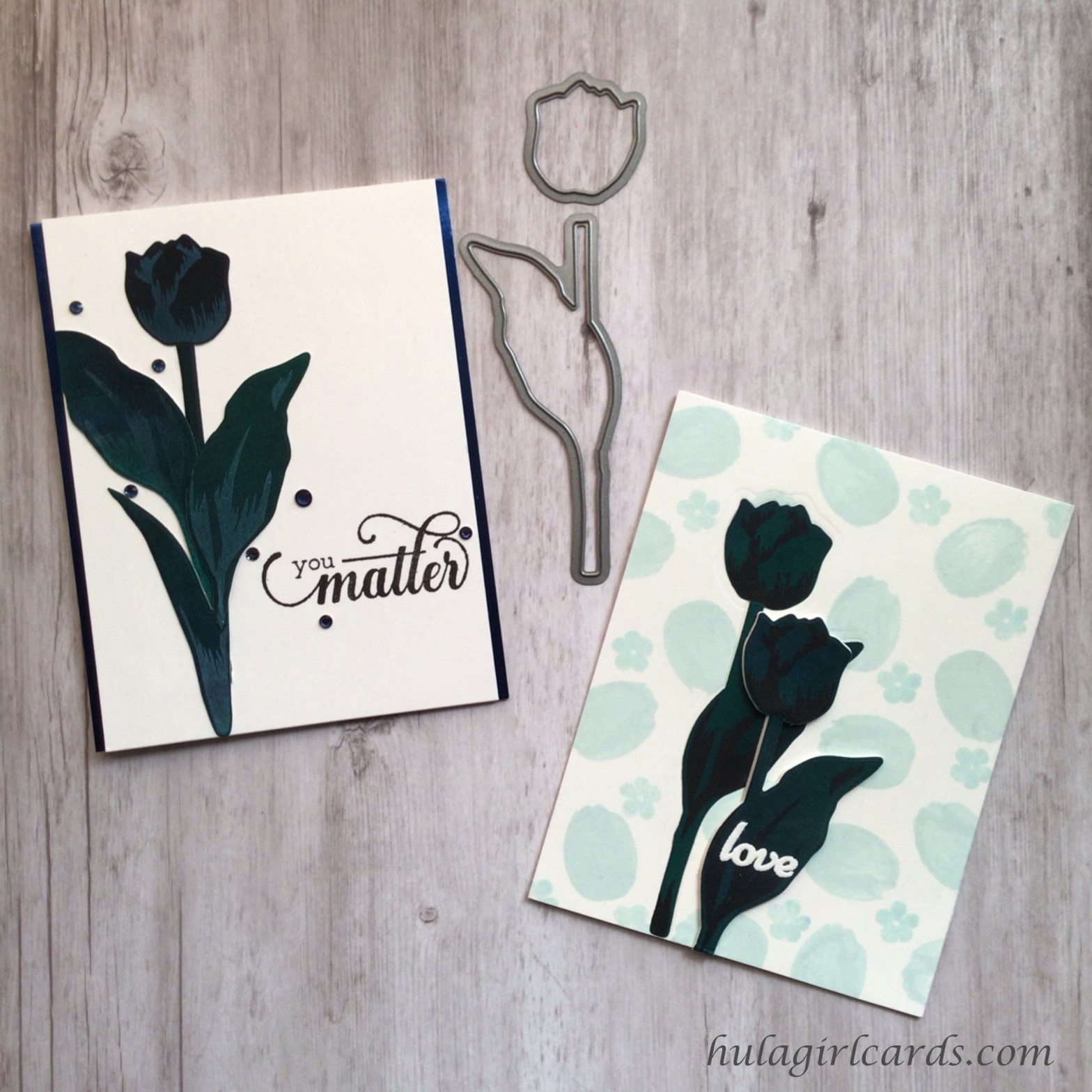 Layered die cuts build strikingly different watercolor tulip focal points.